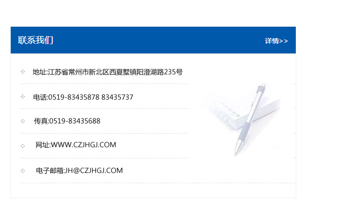 傳真:0519-83435688    郵編:213135    網址:WWW.czjhgj_com.shzonghui.com    電子郵箱:JH@czjhgj_com.shzonghui.com